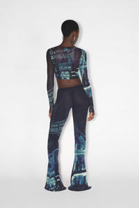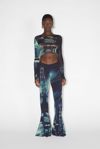 Fashion Fiction Collection Long-sleeved crop top in blue and black tulle with pigalle print. PRODUCT DETAILS - Tight fit - Crew neck - Stretchy material - Material: 100% polyamide - Made in Italy