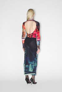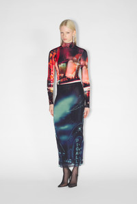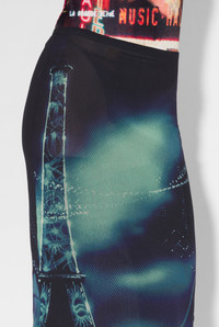 Fashion Fiction Collection Long skirt in blue and black tulle with pigalle print. PRODUCT DETAILS - Tight fit - Stretchy material - Elastic waistband - Ankle length - Black lining - Material: 100% polyamide - Made in Italy