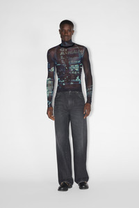 Fashion Fiction Collection Long-sleeved top in blue and black tulle with pigalle print. PRODUCT DETAILS - Tight fit - Turtleneck - Stretchy material - Material: 100% polyamide - Made in Italy