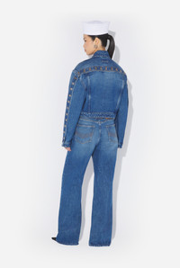 Blue denim jacket with button detail on back and sleeves. PRODUCT DETAILS - Semi-slim fit - Four pockets - Engraved Jean Paul Gaultier buttons - Engraved Jean Paul Gaultier rivets - Material: 100% cotton - Made in Italy - Reference: 25/34-U-VE092-D013-57