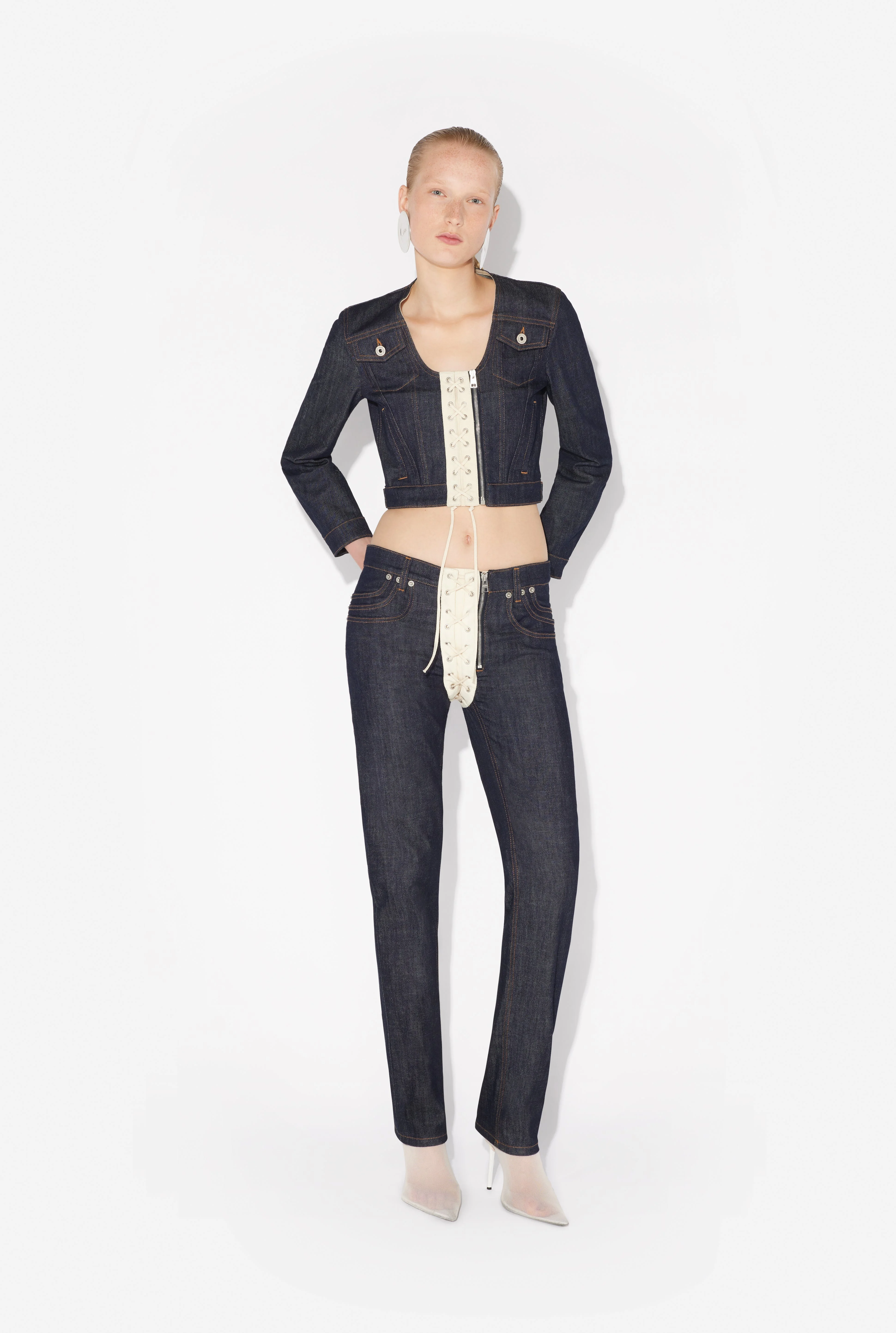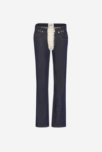 THE CONTRASTING LACE-UP DENIM JEANS
