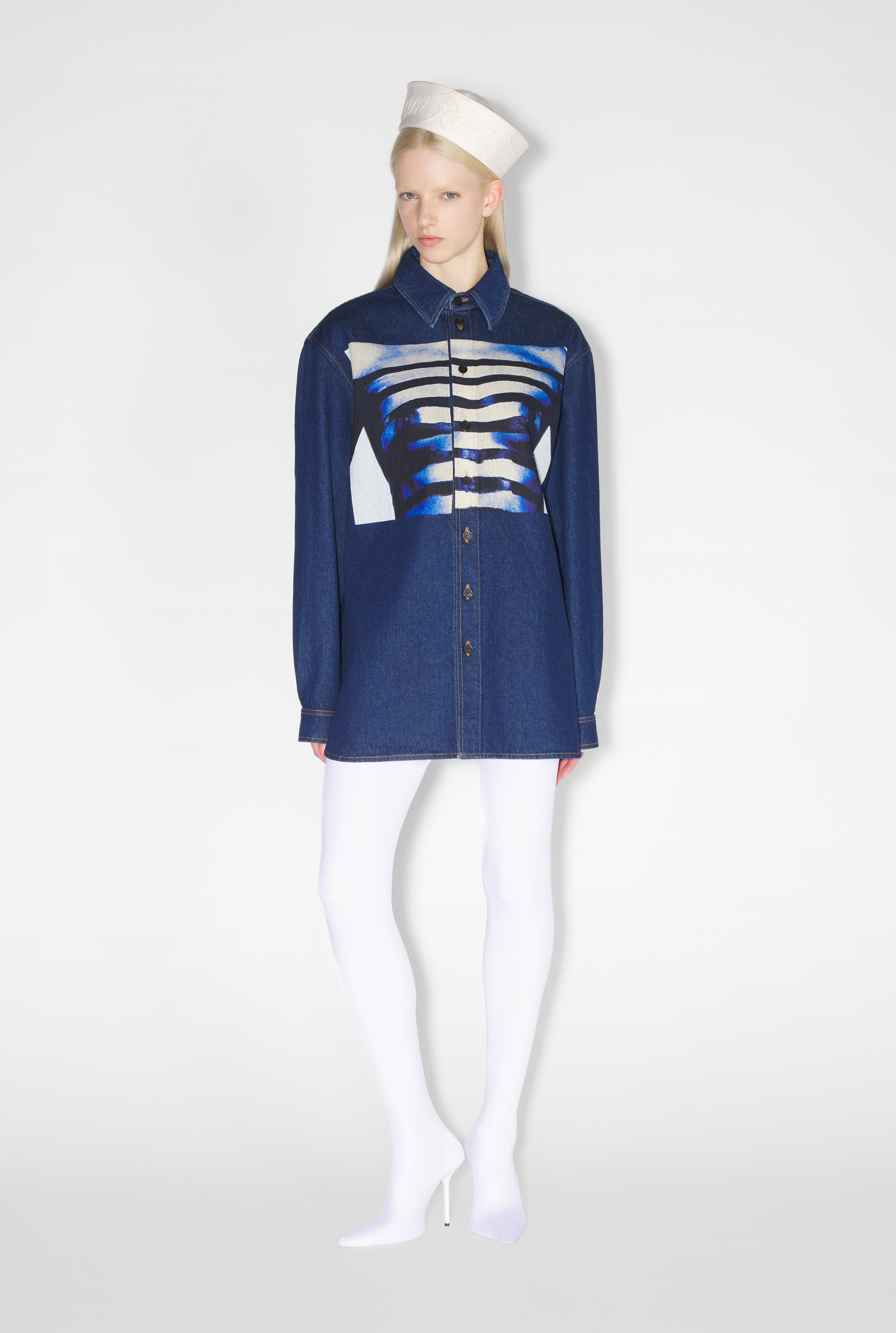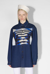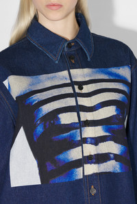Fashion Fiction Collection Denim shirt with Body Marinière print on front. PRODUCT DETAILS - Loose fit - Buttoned cuffs - Buttoned fastening - Hip length - Inkjet print - Material: 100% cotton - Made in Italy