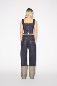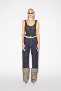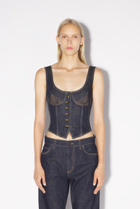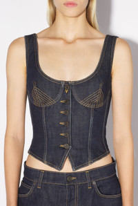Tattoo Collection Denim bustier with contrasting and topstitched lingerie cut-outs and lace-up back. PRODUCT DETAILS - Slim fit - Engraved JPG metallic button fastening - Underwire below the chest - Material: 100% cotton - Made in Italy