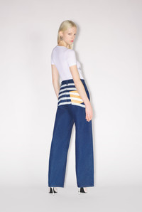 Fashion Fiction Collection Denim jeans with contrasting Marinière digital decal and leather Haute Jeanerie flat pocket on back. PRODUCT DETAILS - Loose fit - Five pockets - Belt loops - Engraved Jean Paul Gaultier metallic button fastening - Material: 100% cotton - Made in Italy