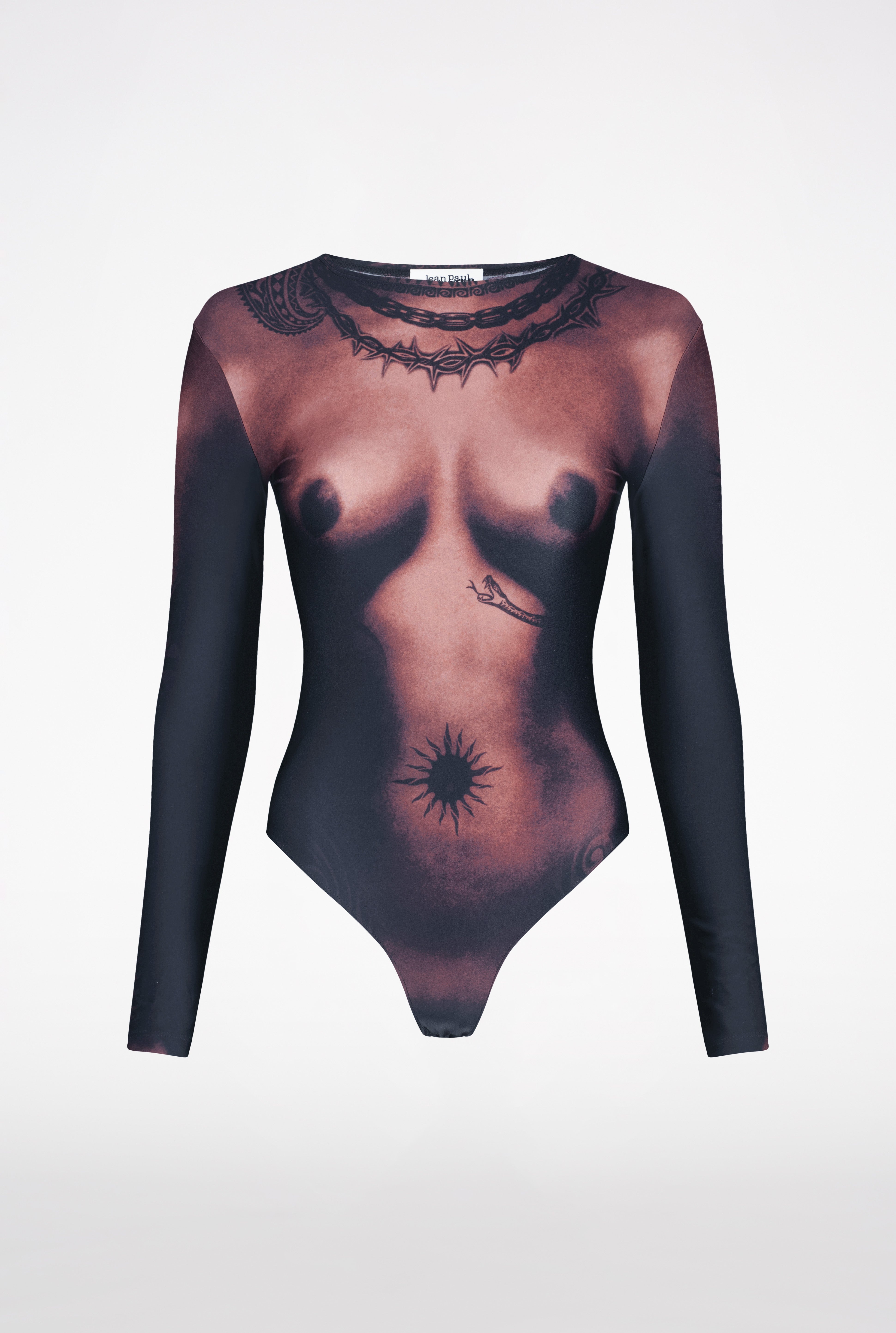 Tattoo Collection Bodysuit with tattooed nude body trompe l'Oeil print. PRODUCT DETAILS - Stretchy fit - Crew neck - Long sleeves - Snap fastening at crotch-Materials: 78% polyamide, 22% elastane - Made in Italy