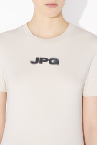 Ecru jersey baby tee with JPG print. PRODUCT DETAILS - Tight fit - Crew neck - Digital printing - Materials: 96% organic cotton, 4% elastane - Made in Portugal - Reference : 25/03-W-TO300-J002-6900