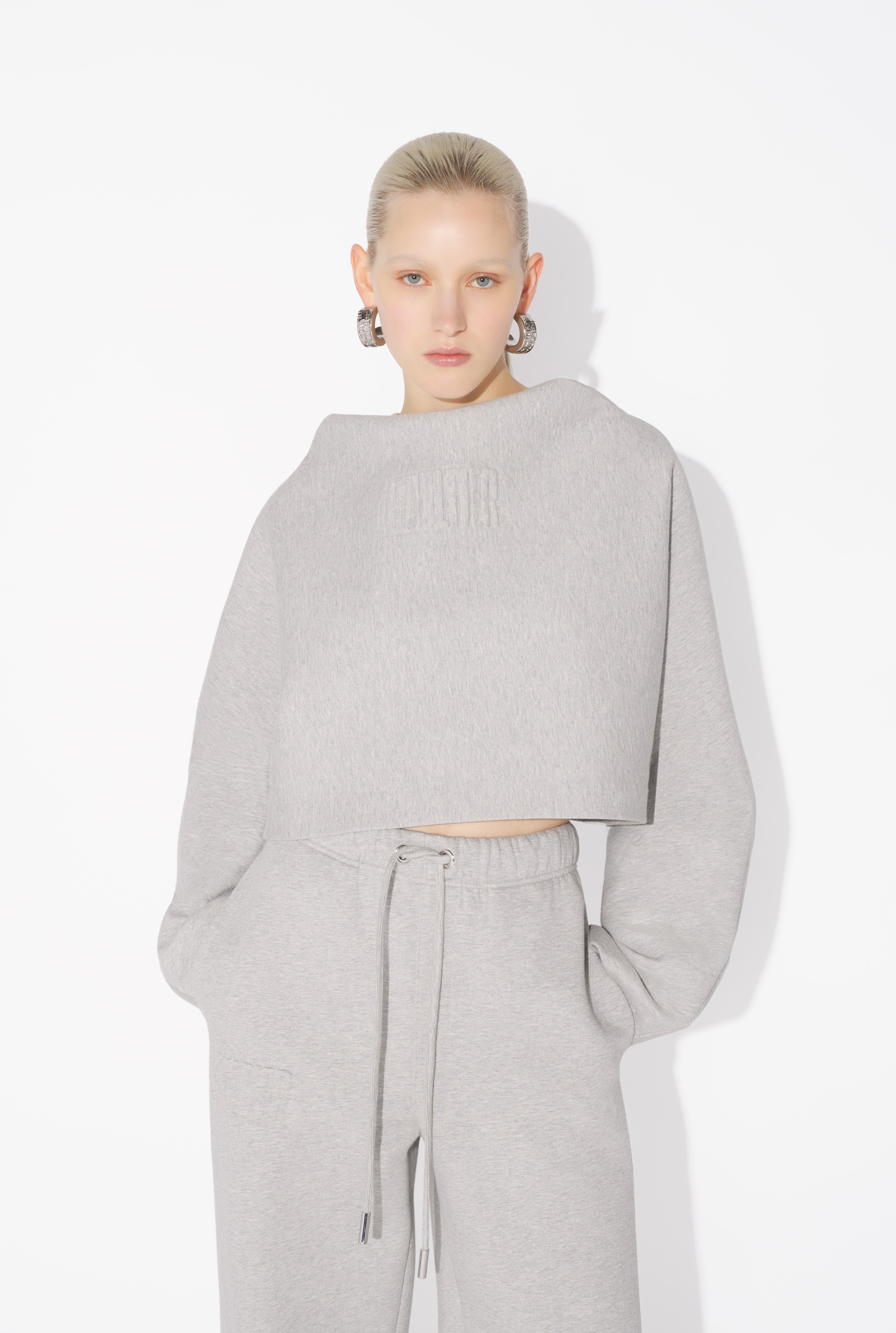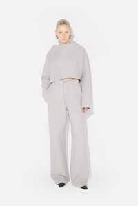 Cropped hooded sweatshirt in gray cotton with embossed Gaultier detail on chest. PRODUCT DETAILS - Boxy fit - Batwing sleeves - Hood - Material: 100% cotton - Made in Bulgaria - Reference : 25/03-W-TO288-J005-13