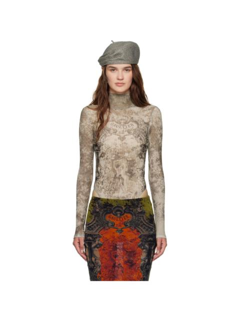 Sheer nylon tulle bodysuit. · Graphic pattern printed throughout · Mock neck · Press-stud fastening at bottom · Fully lined Supplier color: Orange/White Body: 100% polyamide. Lining: 100% polyamide. Made in Italy 252808F055000
