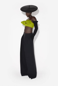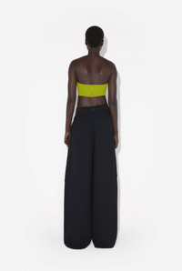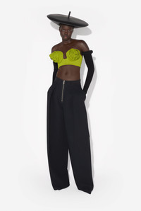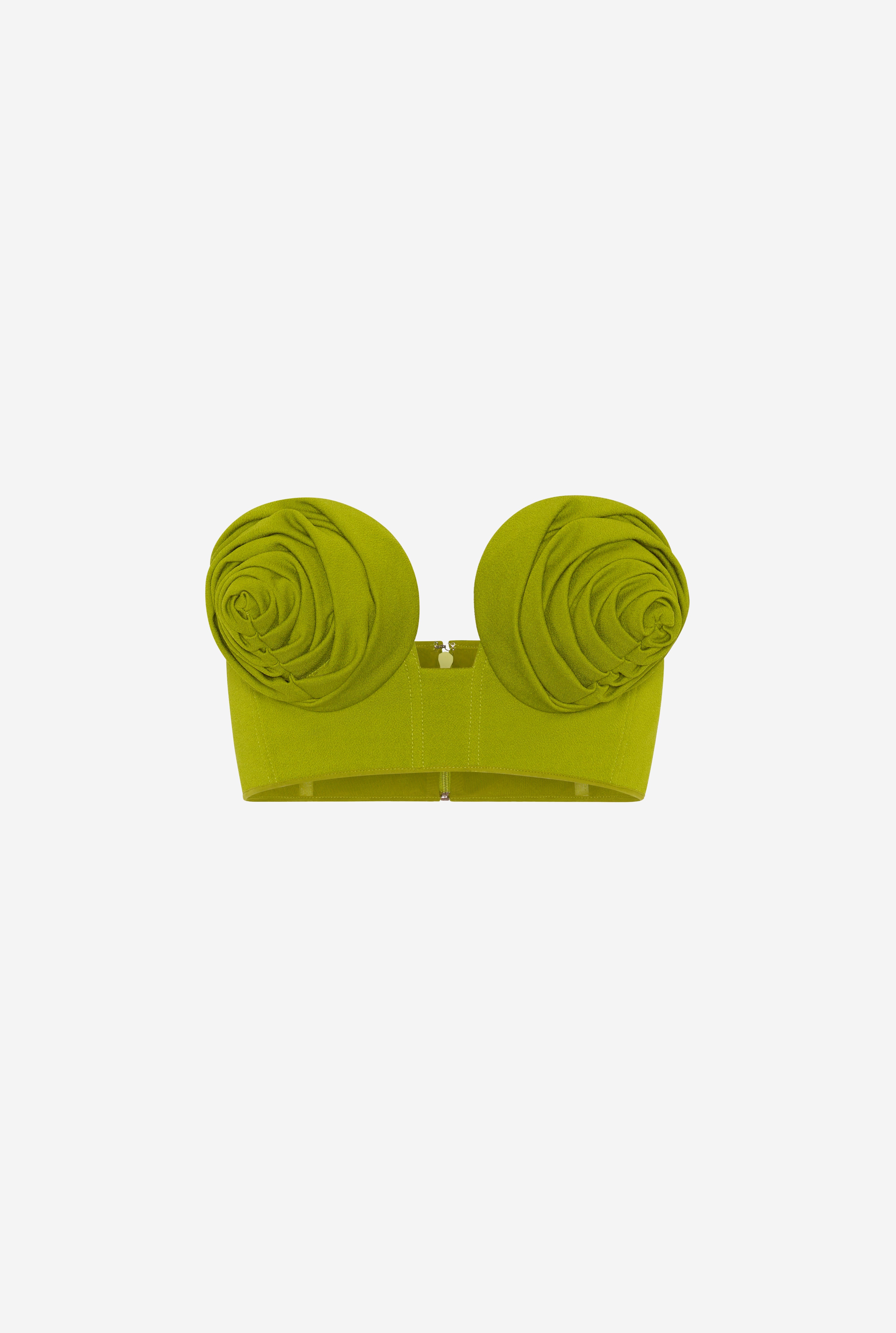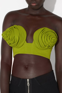 Green crepe crop top with conical bra cup detail. PRODUCT DETAILS - Invisible zip fastening and hook on back - Main material 78% viscose, 16% polyamide, 6% elastane - Lining: 100% cotton - Made in Italy - Reference: 25/33-F-SG045-J081-43