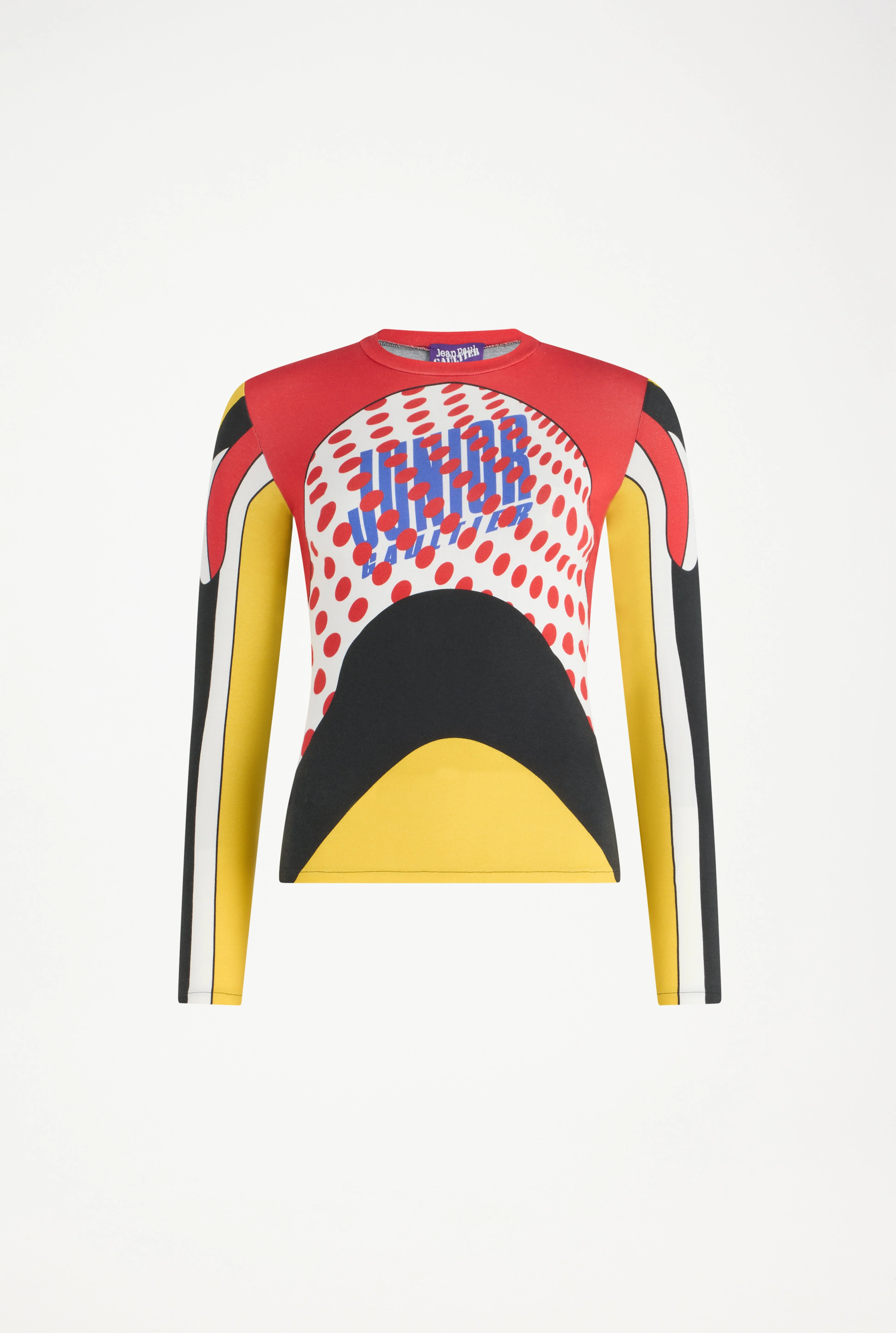 Multicolor long-sleeved top with “Body Map” print and “Junior” logo detail.