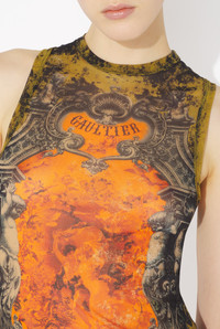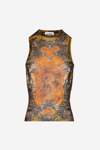 Khaki tulle tank top with “Medaillon” print. PRODUCT DETAILS - Tight fit - Crew neck - Stretchy material - Material: 100% polyamide - Made in Italy - Reference : 25/03-W-TO304-M006P-004115