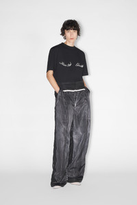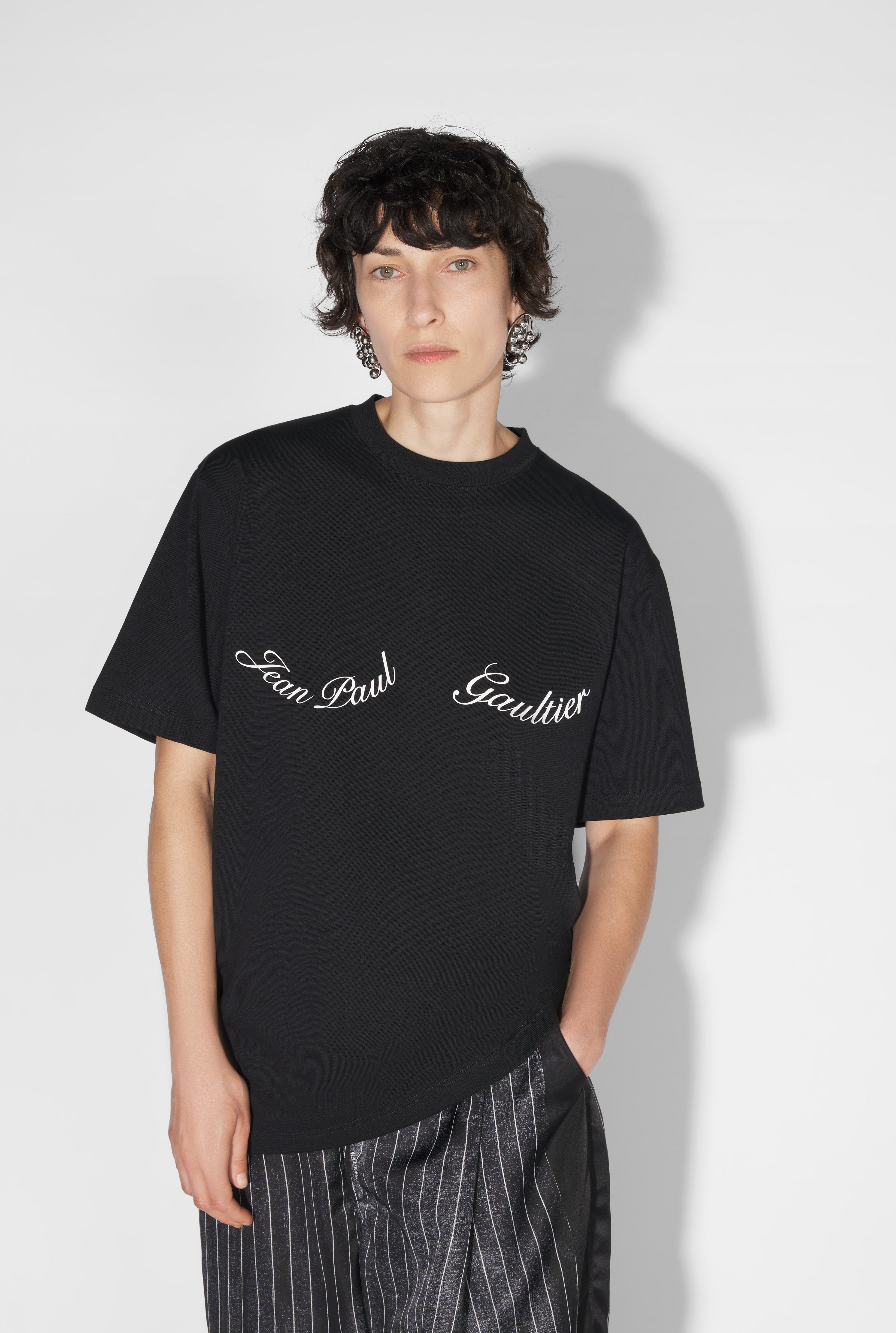 Fashion Fiction Collection Oversized black cotton T-shirt with Jean Paul Gaultier logo print. PRODUCT DETAILS - Oversized fit - Crew neck - Screen print - Material: 100% cotton - Made in Bulgaria