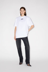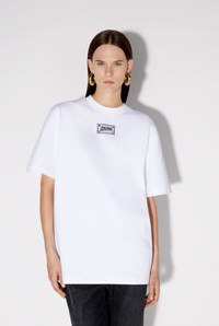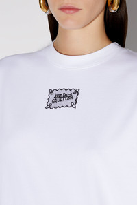 Gaultier TV Collection Oversized white cotton T-shirt with Jean Paul Gaultier printed label. PRODUCT DETAILS - Oversized fit - Crew neck - Screen-printed label - Material: 100% cotton - Made in Bulgaria