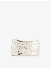 PRODUCT DETAILS - Jean Paul Gaultier brass bracelet - 100% brass - Slips on - Sculpted, asymmetric shape, embossed branding, silver-toned polished finish - Dimensions: width 6cm, depth 4.5cm - Made in Italy - Please use a soft, dry polishing cloth Ref: R04474530
