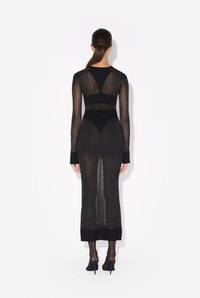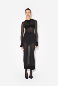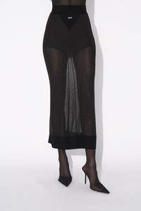 Black knit skirt with Jean Paul Gaultier logo detail at the waist. PRODUCT DETAILS - Tight fit - Elastic waist - Ankle length - Main material: 100% viscose - Secondary materials: 70% viscose, 30% polyester - Made in Italy - Reference: 25/33-F-JU145-M083-00