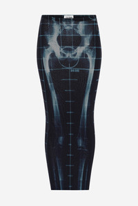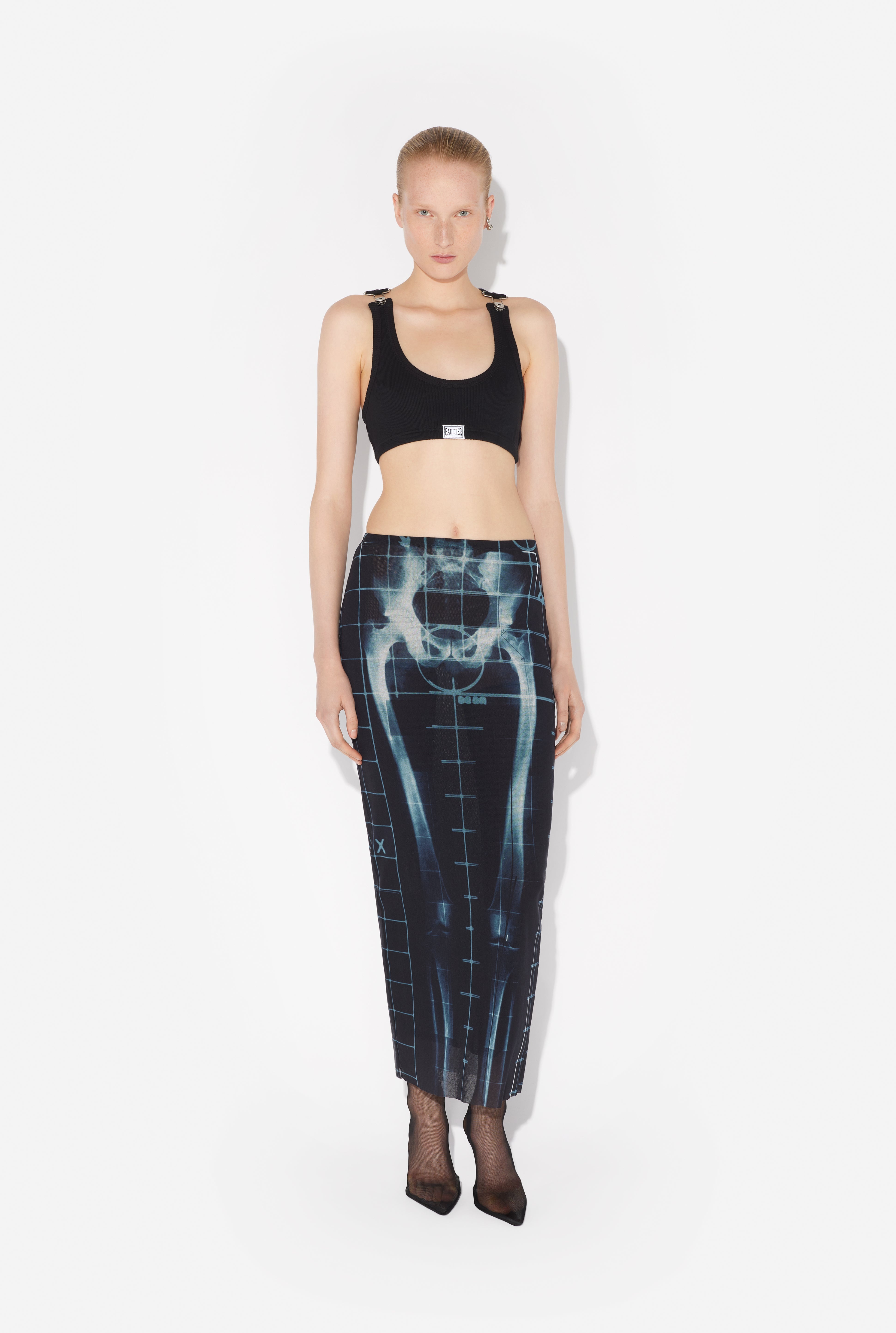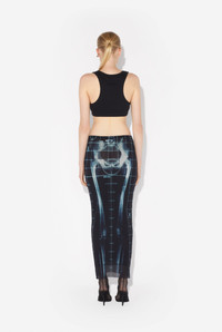 Long black tulle skirt with “Squeletor” print. PRODUCT DETAILS - Tight fit - Stretchy material - Elastic waistband - Ankle length - Tulle lining - Material: 100% polyamide - Made in Italy - Reference: 25/33-F-JU144-T580-005956
