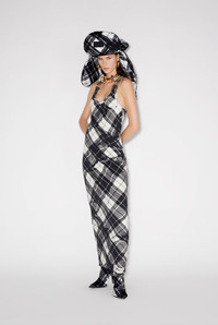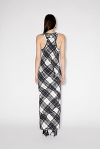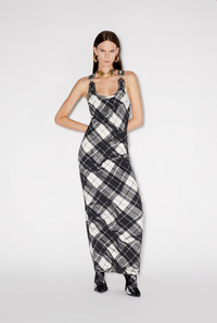 Gaultier TV Collection Long ribbed cotton dress with Tartan print and overalls-inspired buckles. PRODUCT DETAILS - Fitted cut - Crew neck - Metal overalls-inspired buckles - Material: 100% cotton rib - Made in Bulgaria