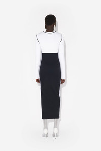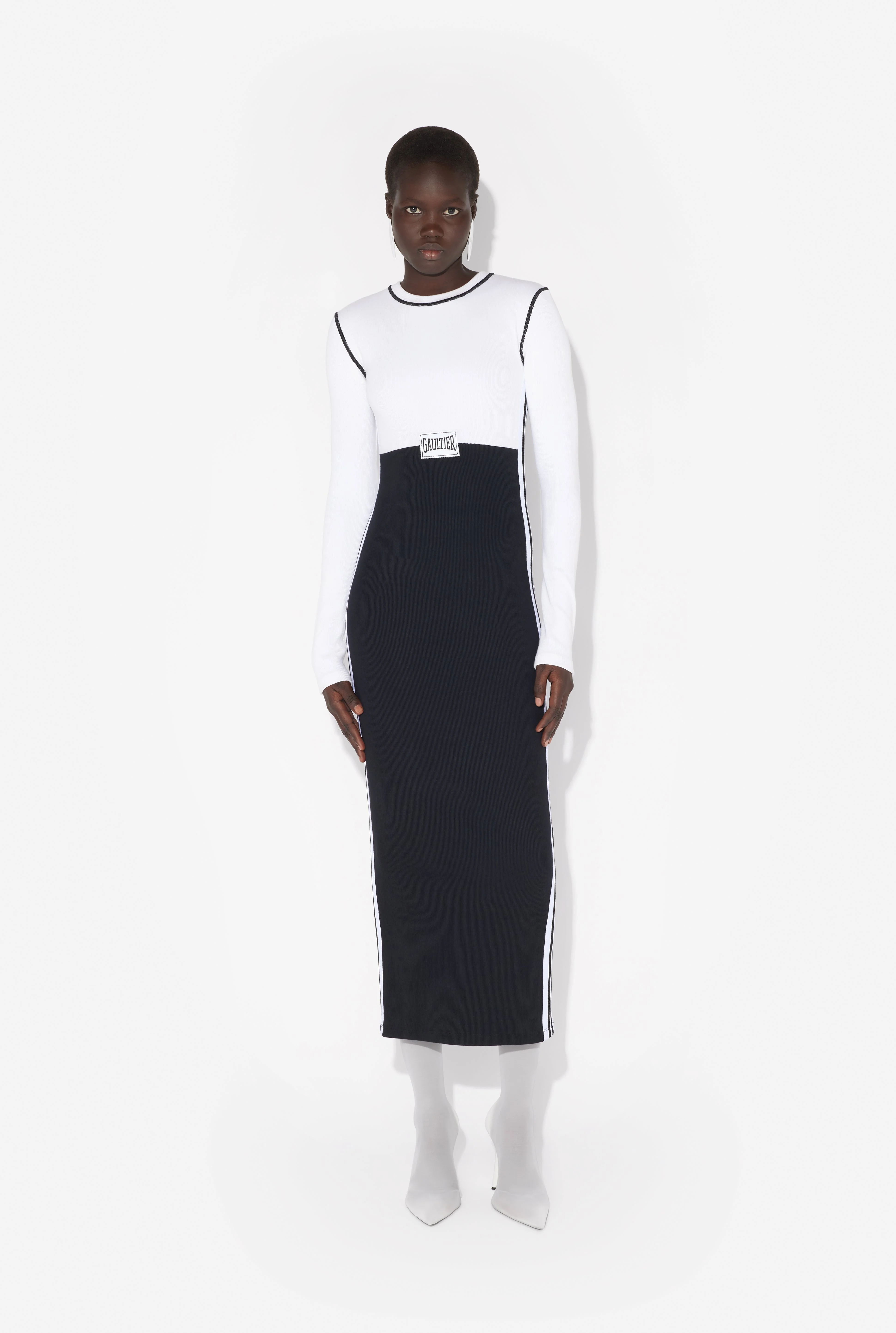 Black and white color-block cotton dress with Gaultier patch at the waist. PRODUCT DETAILS - Tight fit - Crew neck - Materials: 95% cotton, 5% elastane - Made in Portugal - Reference: 25/33-F-RO343P-J080-0100