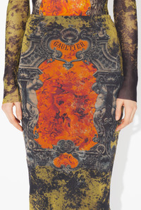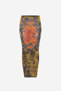 Long khaki tulle skirt with “Medaillon” print. PRODUCT DETAILS - Tight fit - Stretchy material - Elastic waistband - Ankle length - Tulle lining - Material: 100% polyamide - Made in Italy - Reference : 25/03-W-SK005-M006P-004115