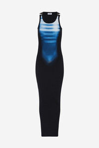 Long blue ribbed cotton dress with “Le Male” print and overalls-inspired buckles with Jean Paul Gaultier engraving. PRODUCT DETAILS - Tight fit - Ribbing - Screen print - Materials: 95% cotton, 5% elastane - Made in Portugal - Reference: 25/33-F-RO373I-J581-0050