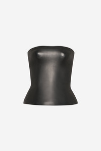 Black leather figure-hugging corset. PRODUCT DETAILS - Tight fit - Open back - Material: 100% sheep leather - Lining: 100% Lycra - Made in Italy - Reference : 25/03-W-LG019-L035-00