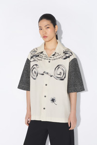 Ecru cotton bowling shirt with “Tattoo” print. PRODUCT DETAILS - Loose fit - Horn button fastening - Horn button cuffs - Material: 100% cotton - Made in Portugal - Reference: 25/34-U-CH098-D504-030030