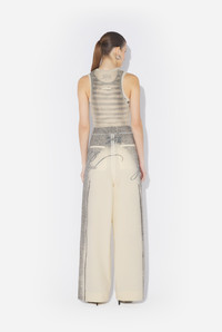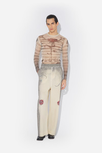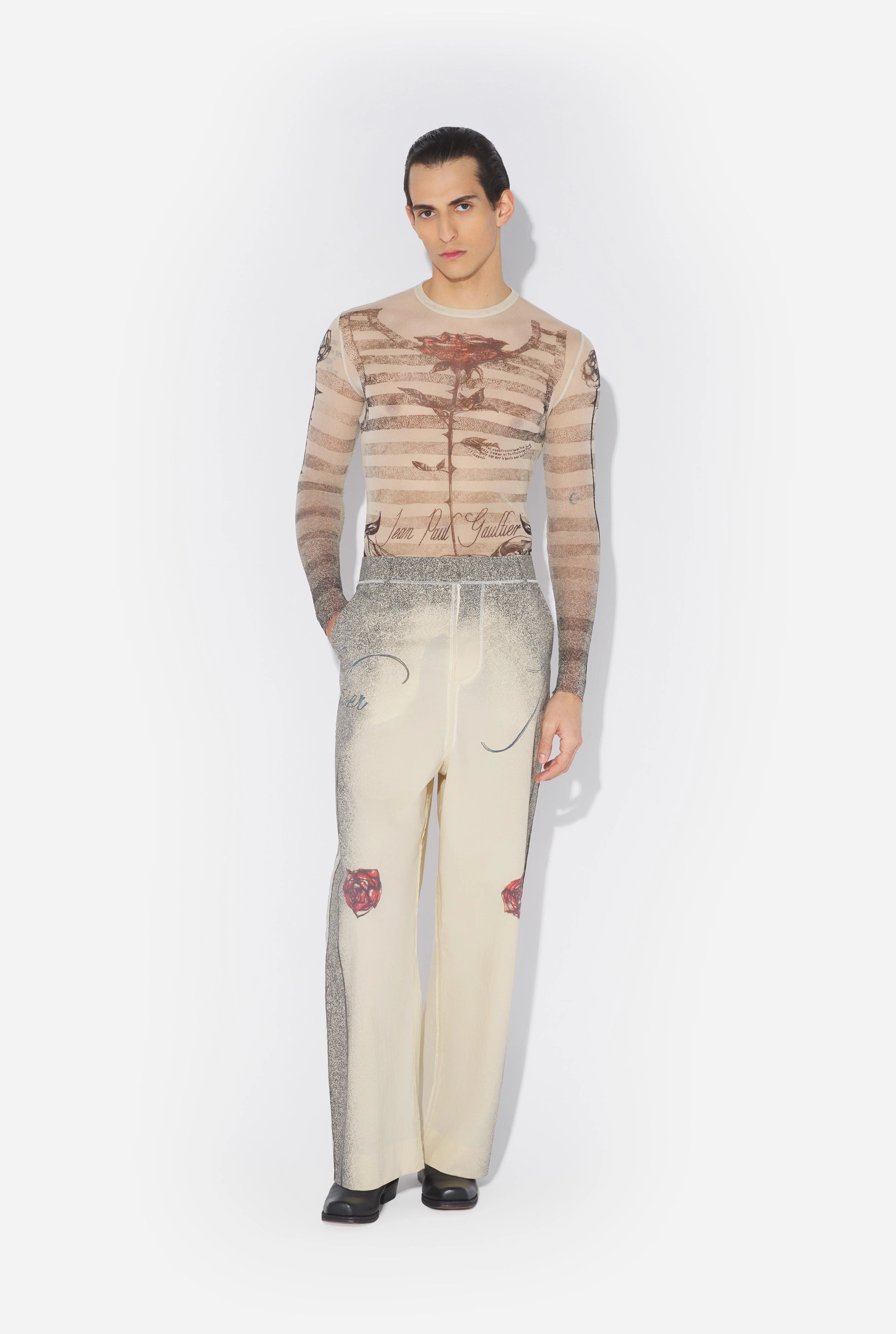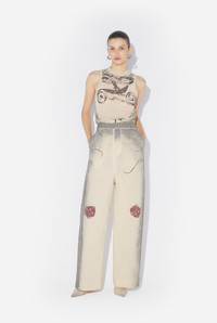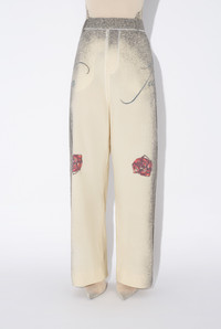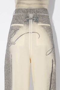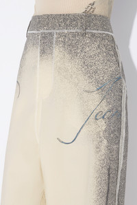 Ecru cotton suit pants with “Tattoo” print. PRODUCT DETAILS - Loose fit - Zip fastening in front - Four pockets - Water-resistant fabric - Main materials: 54% cotton, 40% polyamide, 6% elastane - Lining: 100% cotton - Made in Italy - Reference: 25/34-U-PA192-C589-030030