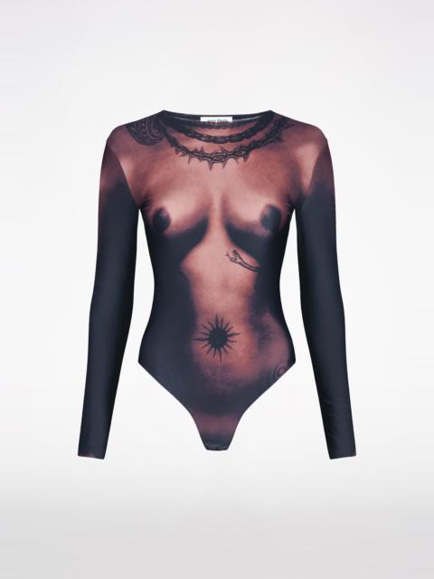 Tattoo Collection Bodysuit with tattooed nude body trompe l'Oeil print. PRODUCT DETAILS - Stretchy fit - Crew neck - Long sleeves - Snap fastening at crotch-Materials: 78% polyamide, 22% elastane - Made in Italy