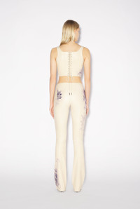 Tattoo Collection Nude-colored leather bustier with purple Tattoo print and lace-up back. PRODUCT DETAILS - Slim fit - Metal zip fastening on front - Material: 100% lambskin - Made in Turkey