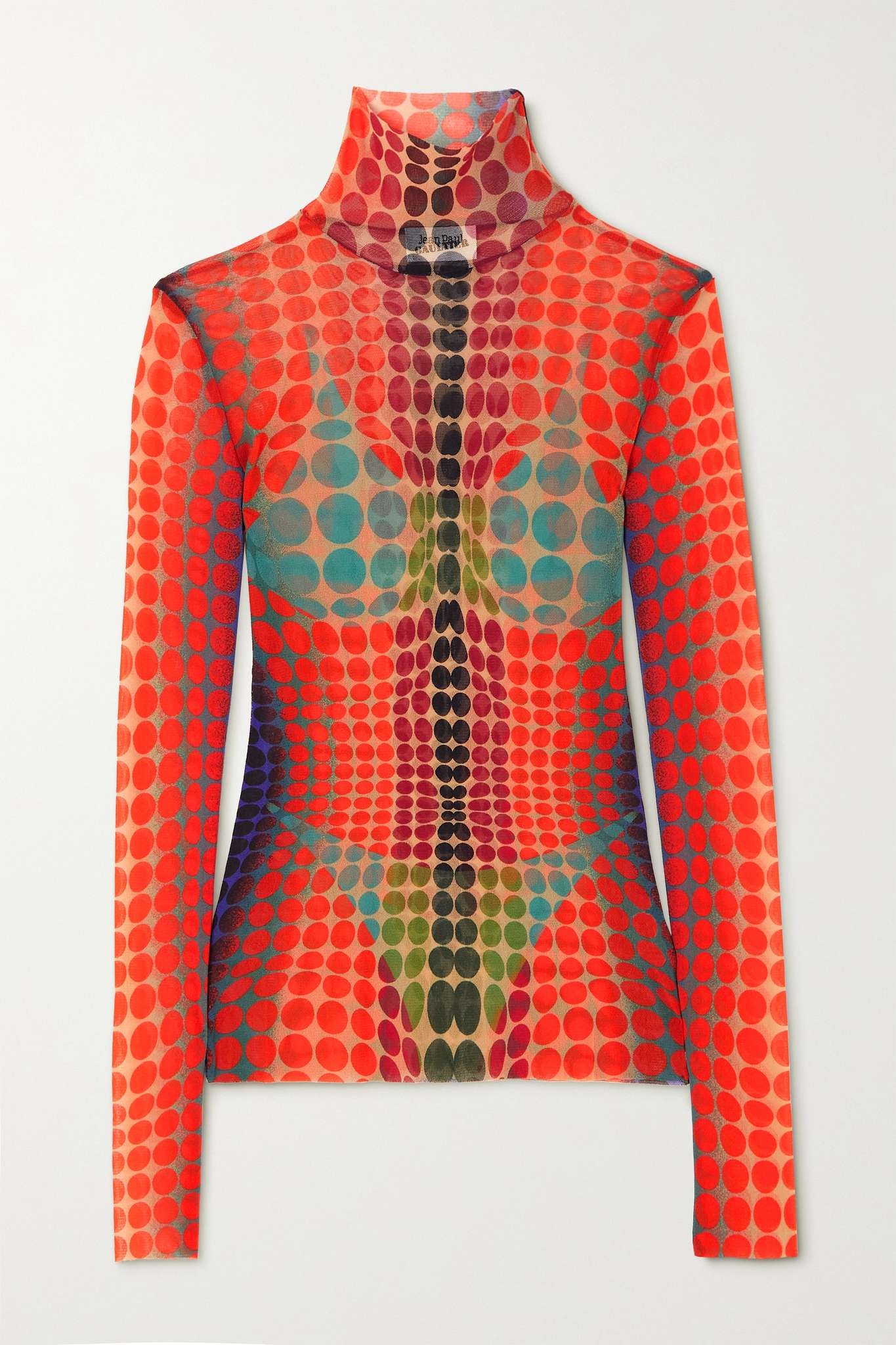 Description The Orange dot-print top Highlights ['* multicolour', '* stretch-design', '* bold polka dot print', '* high neck', '* long sleeves and straight hem.'] Made in Italy Composition Polyamide 100%
