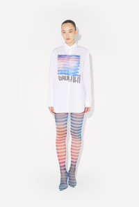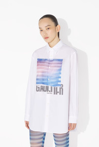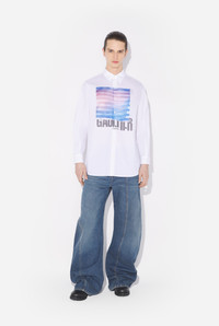Oversized white cotton shirt with “Air” print. PRODUCT DETAILS - Loose fit - Mother-of-pearl button fastening - Mother-of-pearl cuff buttons - Hybrid printing - Material: 100% cotton - Made in Portugal - Reference : 25/03-U-ST030-W013P-015634