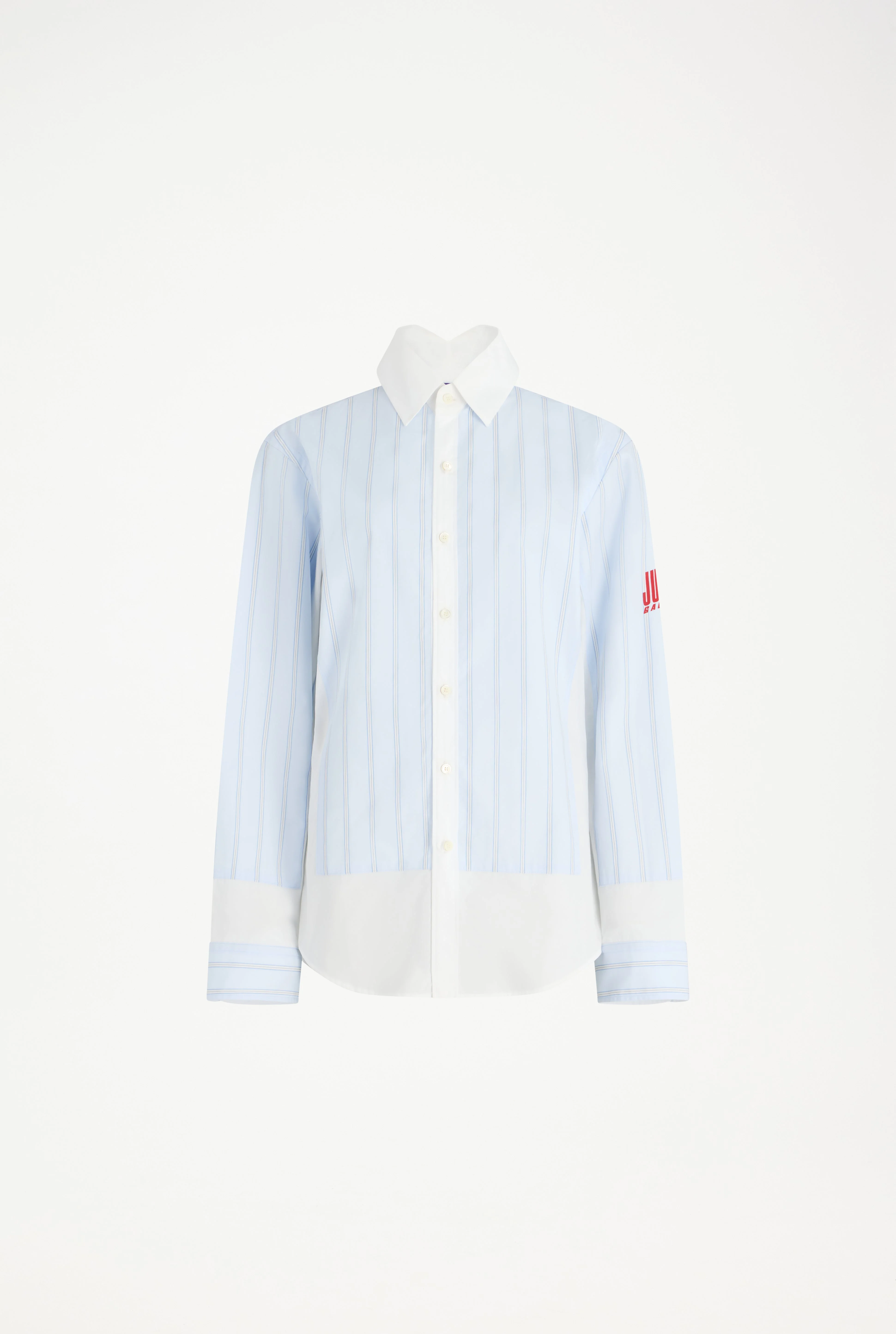 Blue-and-white striped cotton “Petit Grand” shirt with “Junior” logo detail on sleeve.
