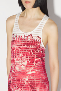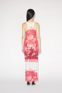 Très Gaultier Collection Long cotton dress with dévoré-effect stripes and red Diablo print. PRODUCT DETAILS - Slim fit - Scoop neck - Materials: 87% Cotton, 10% Polyester, 3% Elastane - Made in Portugal