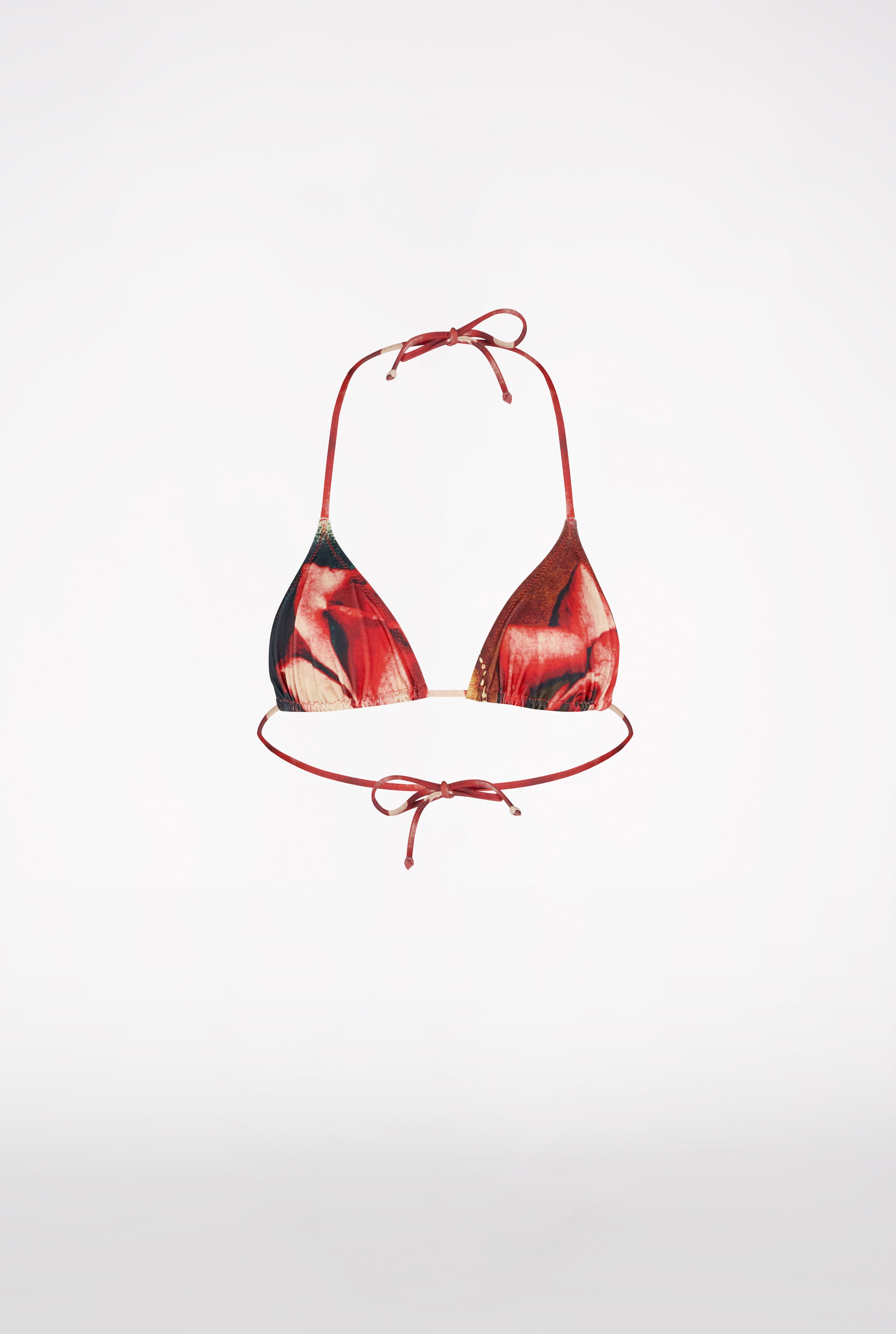 Très Gaultier Collection Bikini top with red rose print. PRODUCT DETAILS - Tied fastening on back - Materials: 83% Polyamide, 17% Elastane - Made in Portugal