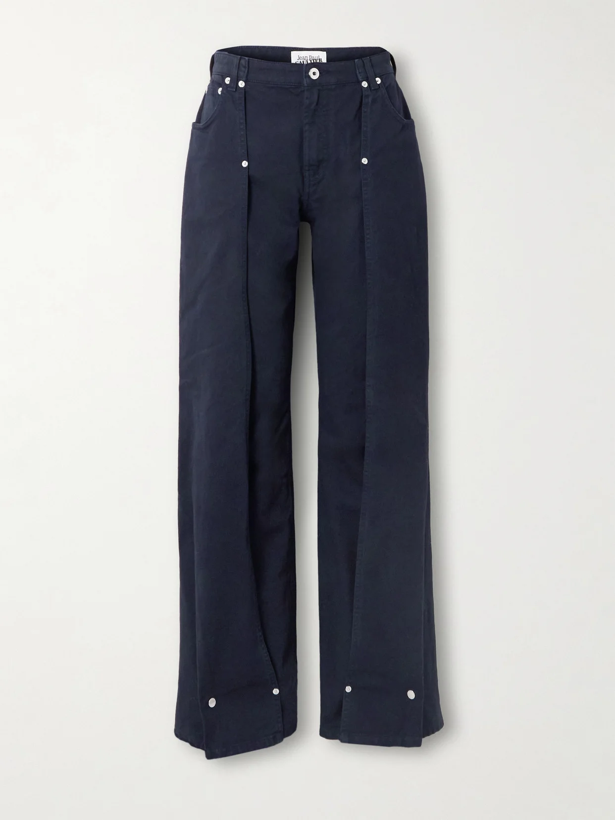 Jean Paul Gaultier's jeans have snap fastenings at the cuffs, so you can taper the legs. They're made from dark denim with a high-rise and feature a leather logo patch on the waistband. Wear yours with the matching jacket in our edit.