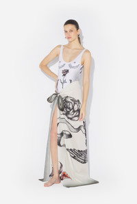 Ecru cotton sarong with “Tattoo Bird” print. PRODUCT DETAILS - Material: 100% cotton - Made in Italy - Reference: 25/34-U-JU174-C595-030030