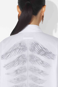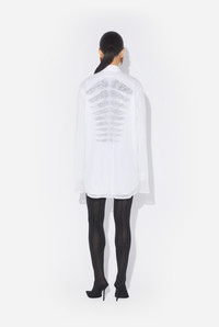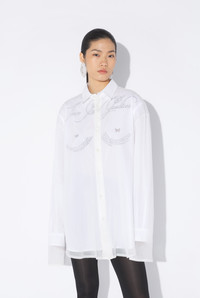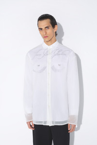 Long-sleeved shirt in cotton and layered semi-transparent tulle, with “Tattoo Poem” prints on chest and back. PRODUCT DETAILS - Loose fit - Mother-of-pearl button fastening - Mother-of-pearl button cuffs - Main material: 100% cotton - Secondary material: 100% polyamide - Made in Portugal - Reference: 25/34-U-CH093-C586-0001