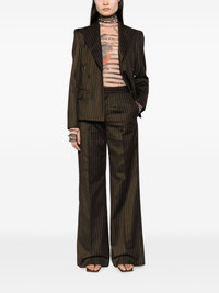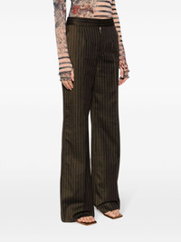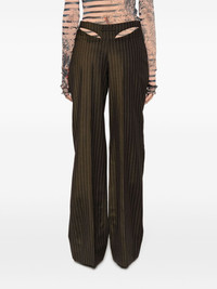 Tattoo Collection Brown wool suit pants with ecru-colored tennis stripes and visible thong detail. PRODUCT DETAILS - Flared cut - High waist - Materials: 85% wool, 14% viscose, 1% polyester - Lining: 100% viscose - Made in Italy