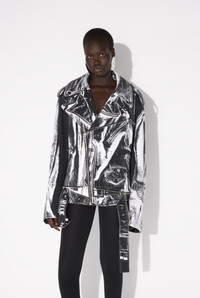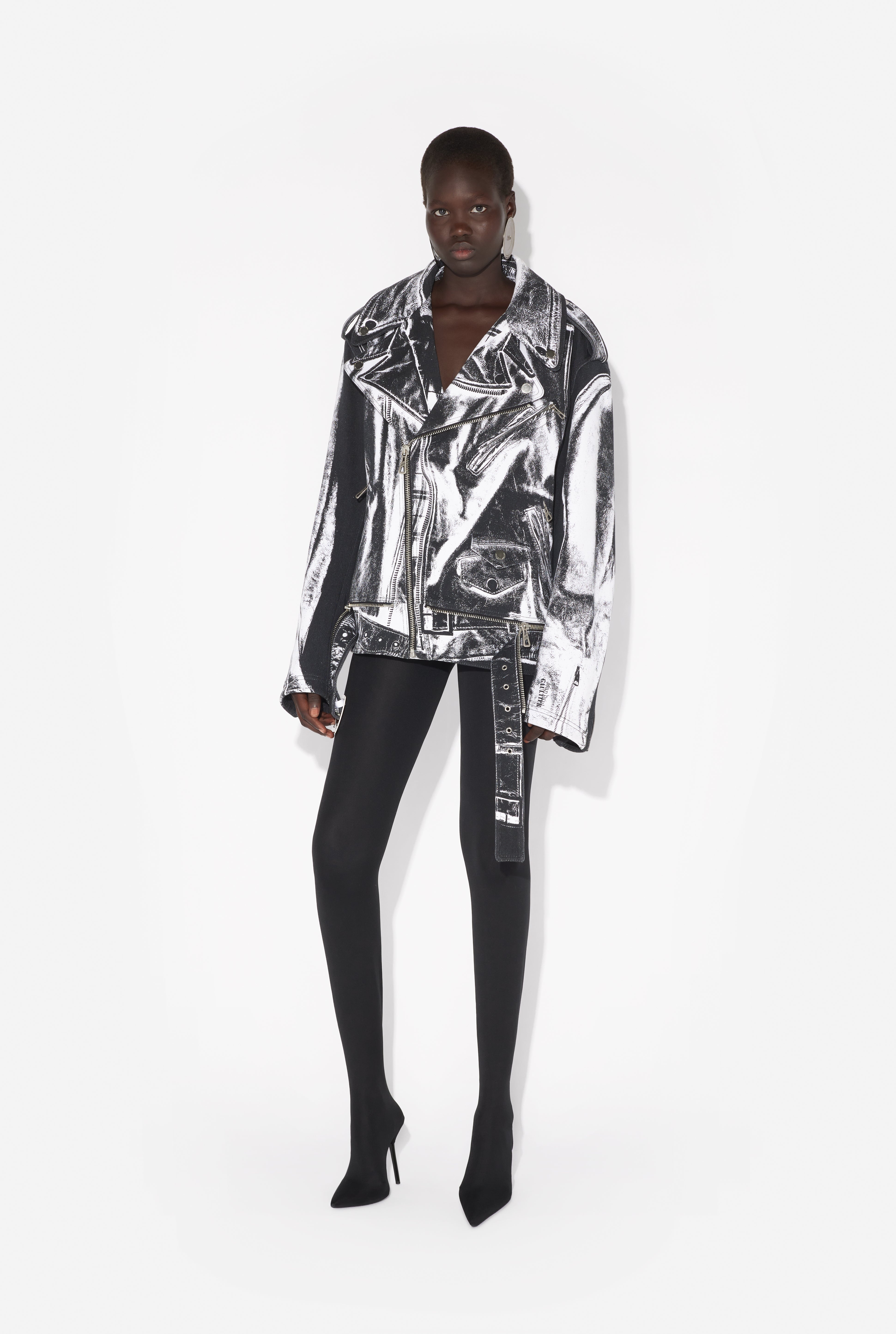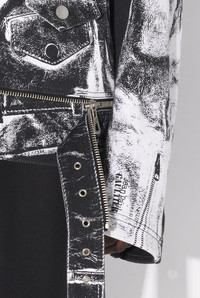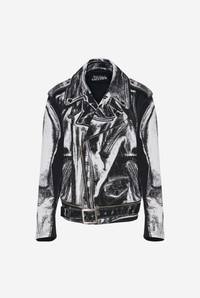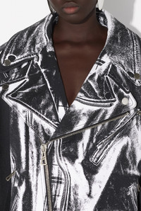 White cotton canvas perfecto with perfecto trompe-l’œil print and detachable belt. PRODUCT DETAILS - Oversized fit - Zip fastening - Zip-up pocket on chest - Flat pocket in front - Snap buttons with Jean Paul Gaultier engraving on collar - Straps at shoulders - Zip-up cuffs with Jean Paul Gaultier logo print - Material: 100% cotton - Made in Italy - Reference : 25/33-F-BL055I-C569-0001