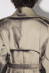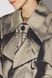 Tres Gaultier Collection Belted cotton trench coat with trompe-l'œil print. PRODUCT DETAILS - Oversized fit - Two buttoned raglan pockets - Tone-on-tone buckled belt - Single-breasted button fastening - Checked lining - Slit on back - Material: 100% Cotton - Made in Italy"