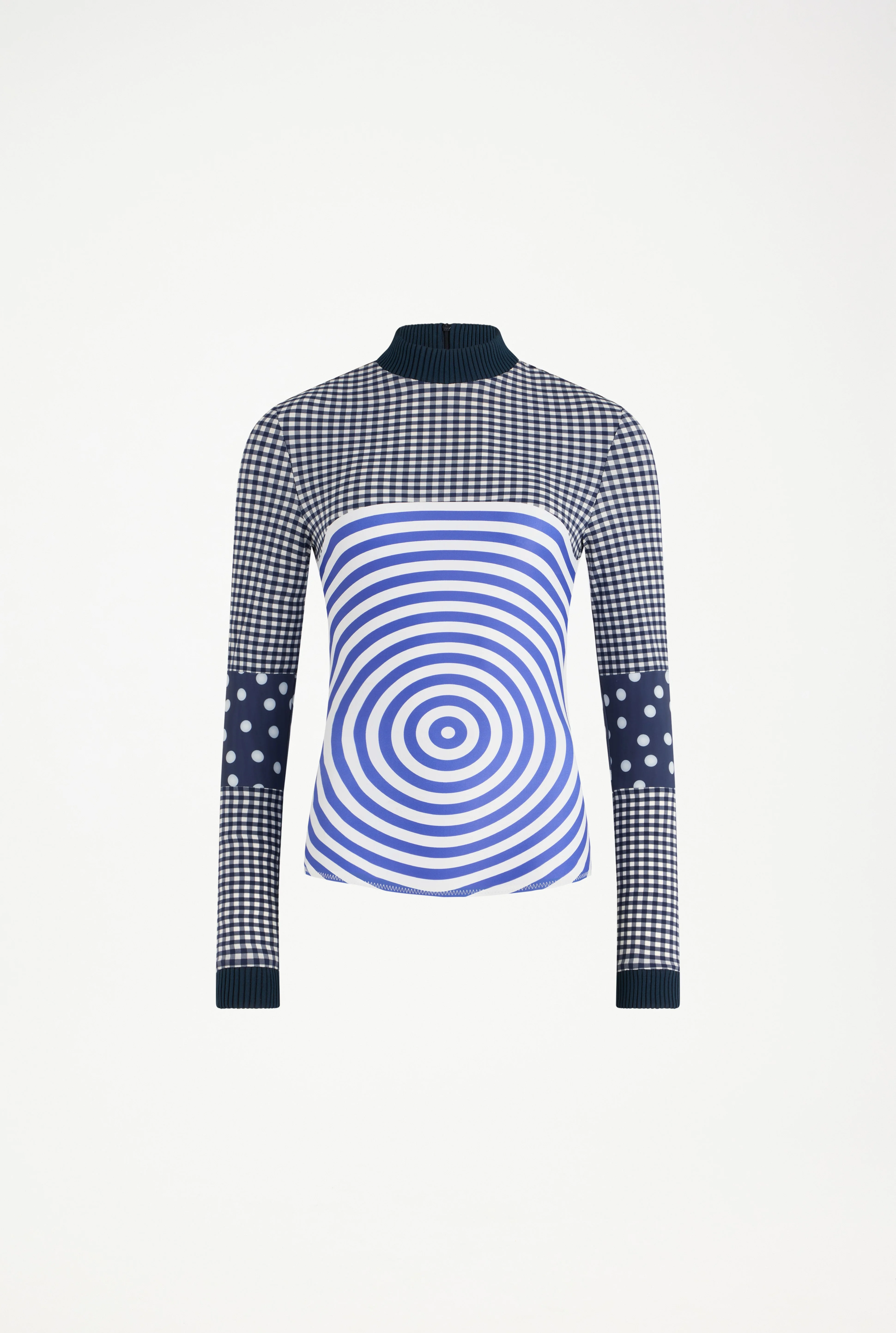 Mix jersey knitted "Vichy"and "Target" long sleeve top with ribbing.