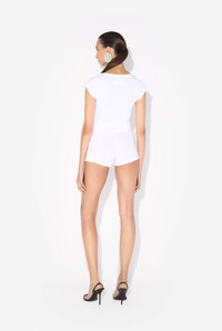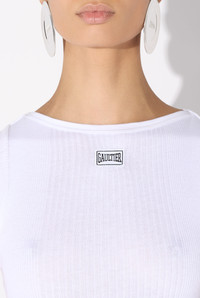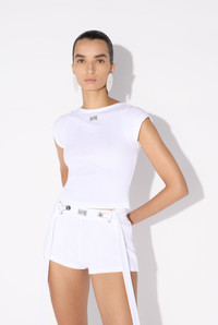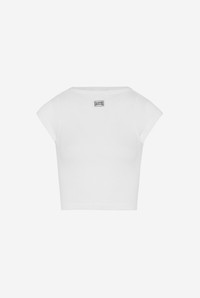 Cropped white cotton T-shirt with Gaultier patch below the neckline. PRODUCT DETAILS - Tight fit - Crew neck - Materials: 100% cotton - Made in Bulgaria - Reference: 25/33-F-TS105P-J054-01