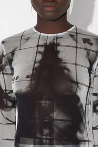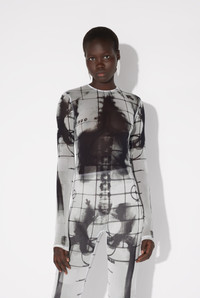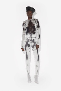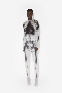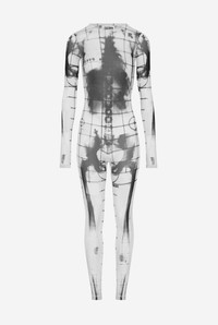 Long-sleeved black tulle jumpsuit with “Squeletor” print. PRODUCT DETAILS - Tight fit - Crew neck - Stretchy material - Invisible zip fastening on back - Materials: 100% polyamide - Made in Italy - Reference : 25/33-F-CB023-T580-0100