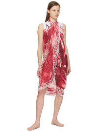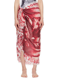 Semi-sheer plain-woven modal- and cashmere-blend cover up. Graphic pattern printed and frayed edges throughout. · Wrap construction · Self-tie fastening Supplier color: White/Red