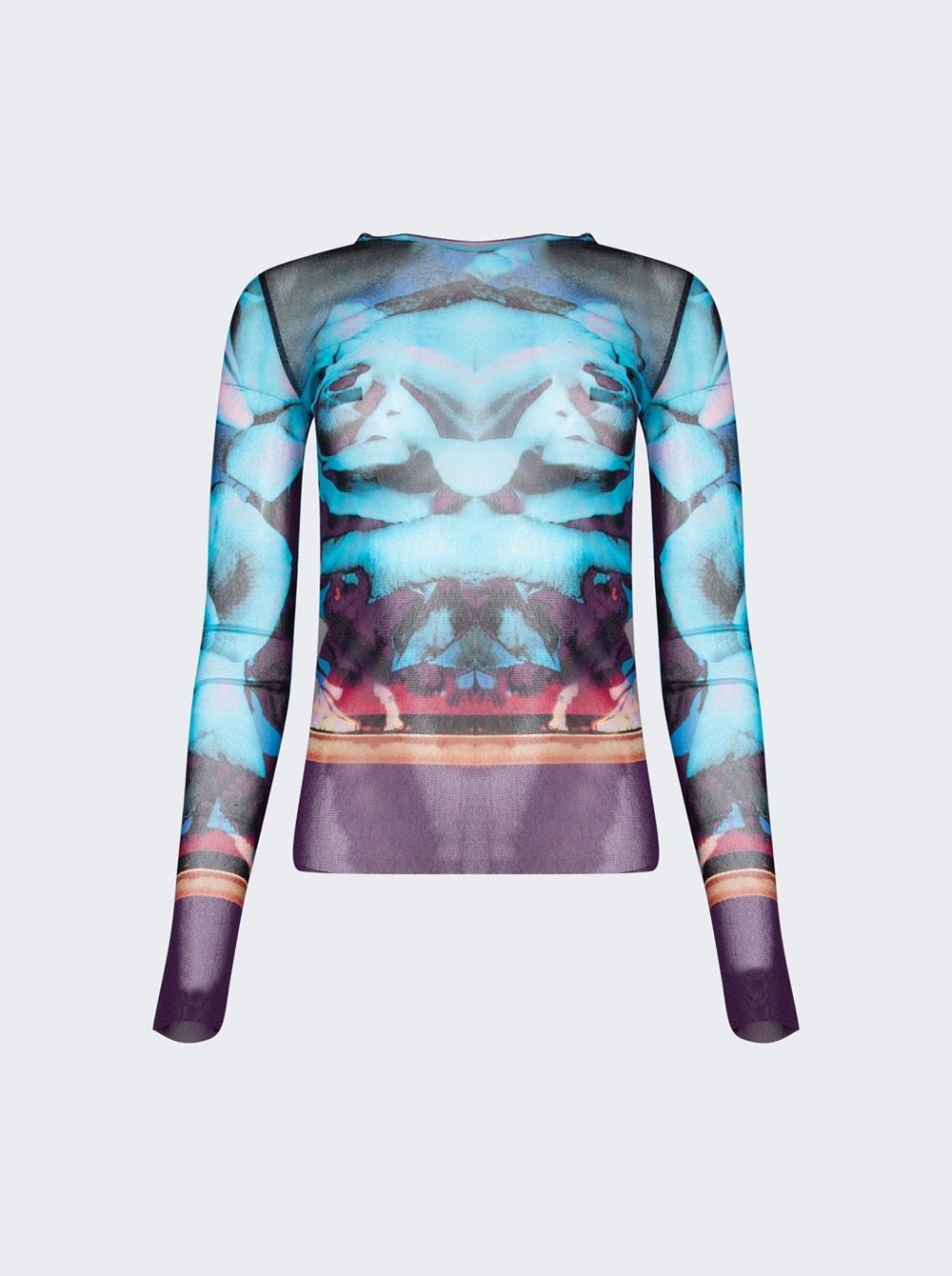 TrÈs Gaultier #1 Rose Printed Mesh Long Sleeve Top Blue And Purple