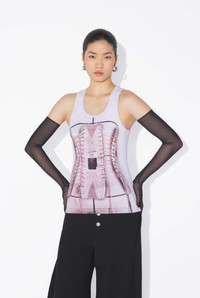 Tank top in ribbed pink cotton with trompe-l’œil corset print. PRODUCT DETAILS - Tight fit - Ribbing - Materials: 96% cotton, 4% elastane - Made in Portugal - Reference: 25/34-F-DB057-J582-260100