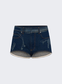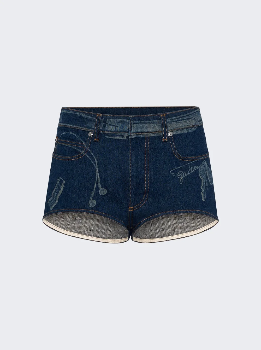 Details - Blue denim shorts with various trompe l’œil details - Contrast topstitching - Five flat pockets, belt loops - Jean Paul Gaultier engraved buttons and rivets - Material : 100% Cotton Vendor Color Code: Brand Style: 26/01-W-TR061-D027-57 Designer/Brand: JEAN PAUL GAULTIER