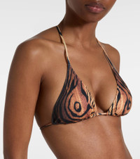 Dubbed fashion's “enfant terrible”, Jean Paul Gaultier hails the renaissance of vintage style codes through pop culture-inspired designs. This bikini top features a trompe l’oeil print and classic halter neckline. Product Details - Material: 83% polyester, 17% elastane - Care instructions: machine wash at 30 degrees - Made in Portugal - Designer color name: Black/Brown - Item color: brown, black - Lining: 90% polyamide, 10% polyester - Self-tie neck and back - Item number: P01072644 Size & Fit - True to size - Unpadded Top - The model seen in the picture is 178cm-5'10", cup size B, and wearing a size XS