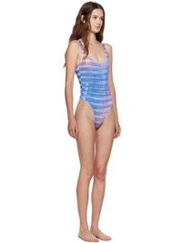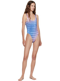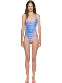 Stretch jersey one-piece swimsuit. · Stripes printed throughout · Scoop neck · Locker loop at low back · Partially lined Supplier color: Light blue/Blue Body: 83% polyester, 17% elastane. Lining: 90% polyamide, 10% elastane. Made in Portugal 252808F103001