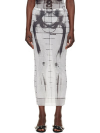 Semi-sheer nylon tulle maxi skirt. Graphic and check pattern printed throughout. · Elasticized waistband · Raw edge at hem · Locker loop at back waistband · Fully lined Supplier color: White/Black 100% nylon. Made in Italy 251808F093001